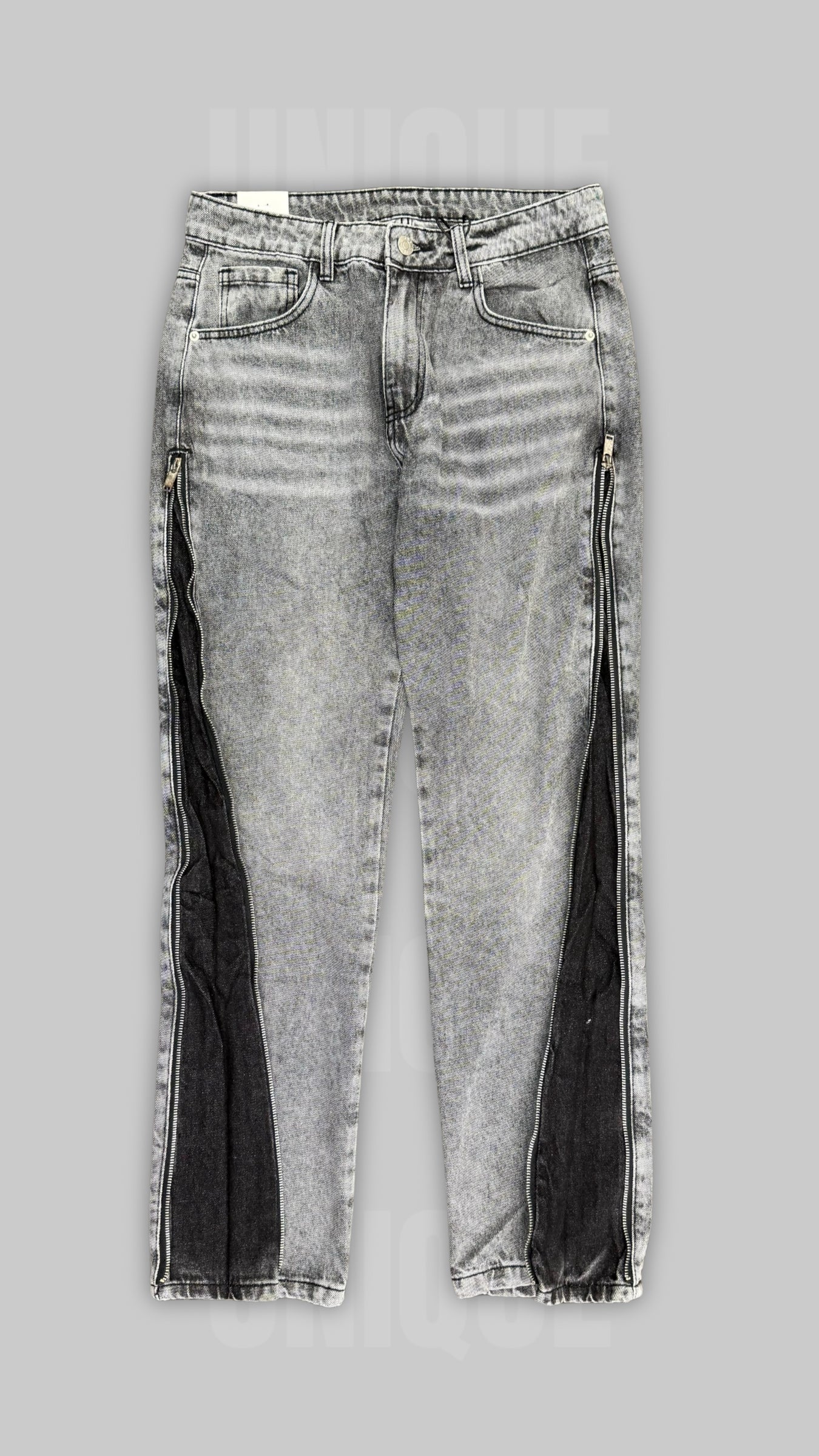 Porta il tuo stile streetwear al livello successivo con questi jeans grigi effetto acid wash dal design unico e grintoso. Le zip laterali a tutta lunghezza donano un tocco urban e permettono di personalizzare il fit a seconda del mood: chiuse per un look più tapered, aperte per un vibe più rilassato e oversize.