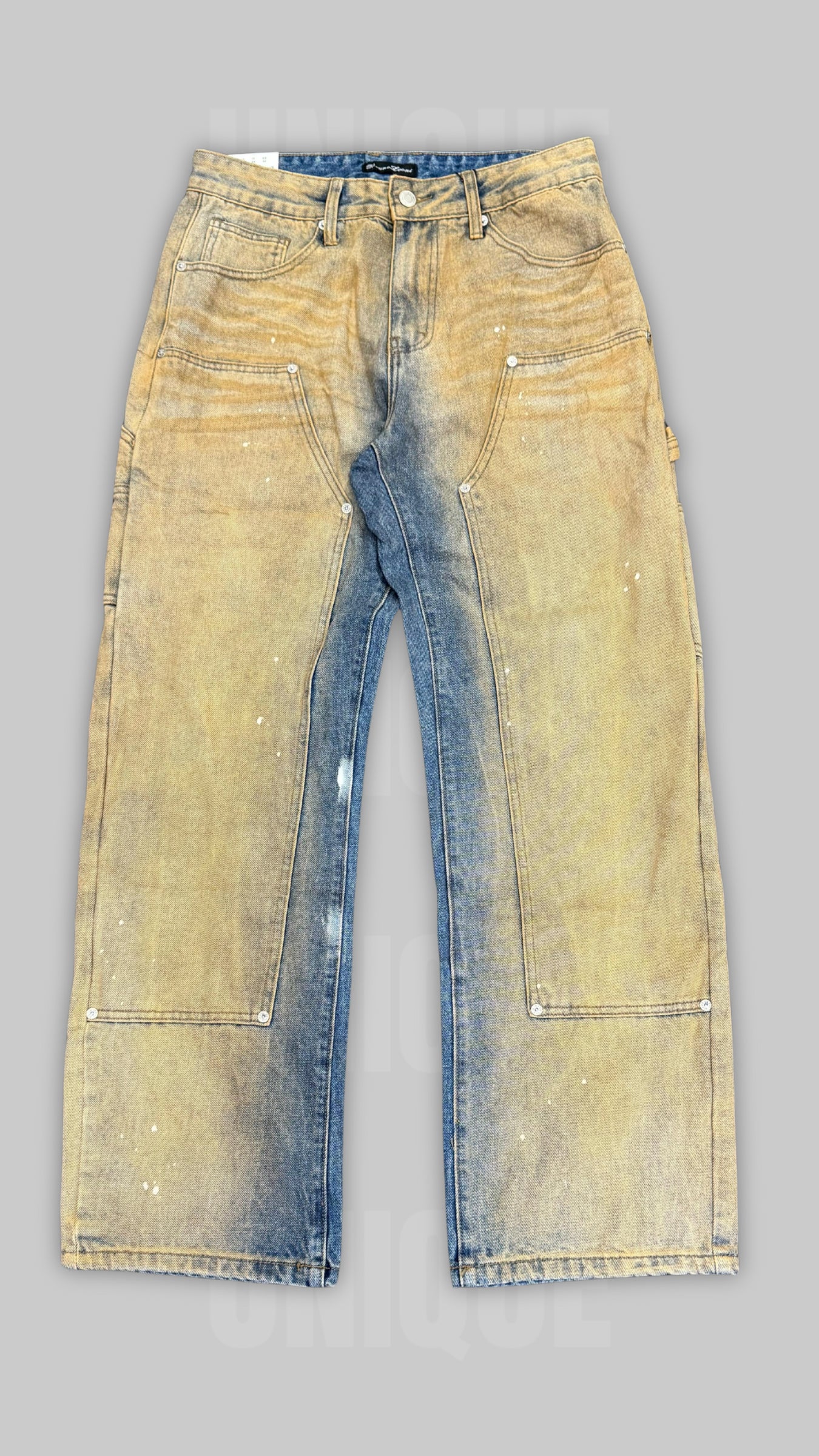 Un capo dal carattere deciso e dall’ispirazione workwear. Questi jeans baggy fit presentano un lavaggio dal forte impatto visivo, con sfumature marcate e dettagli effetto vissuto che conferiscono personalità e un look autentico.
